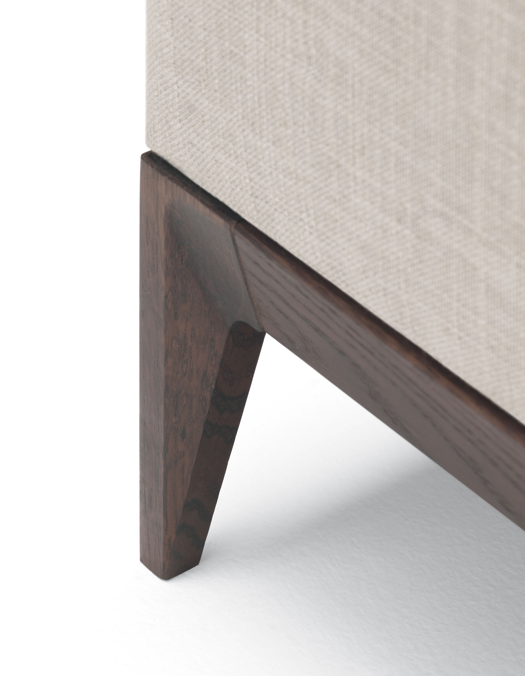 Sofa base in solid wood in oak stained, structure in wood and multilayer board with elastic belts covered with polyurethane foam, dacron fibre and light velvet.