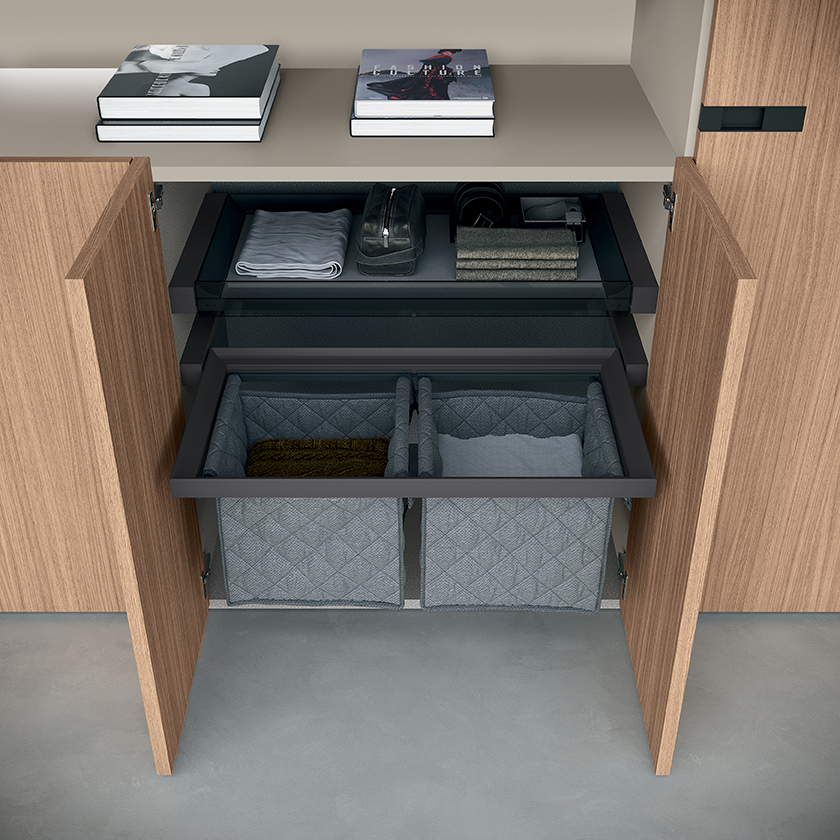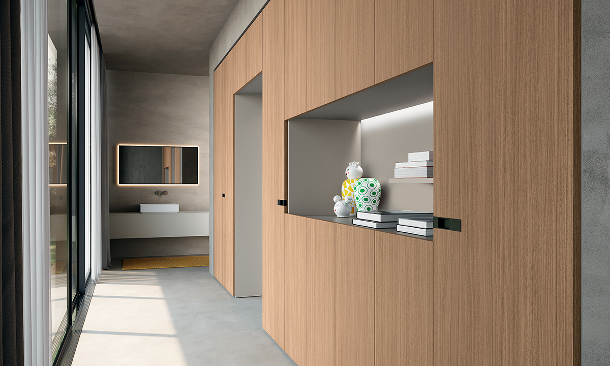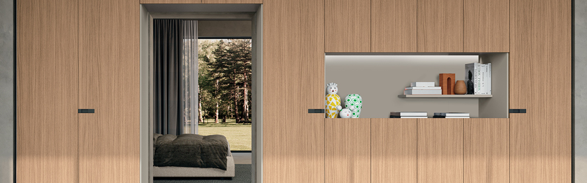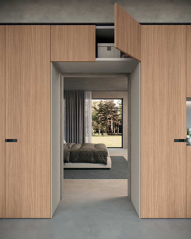 The possibility of customising the room with an over door wardrobe allows for a solution that exploits every available inch and follows the architecture of the room.