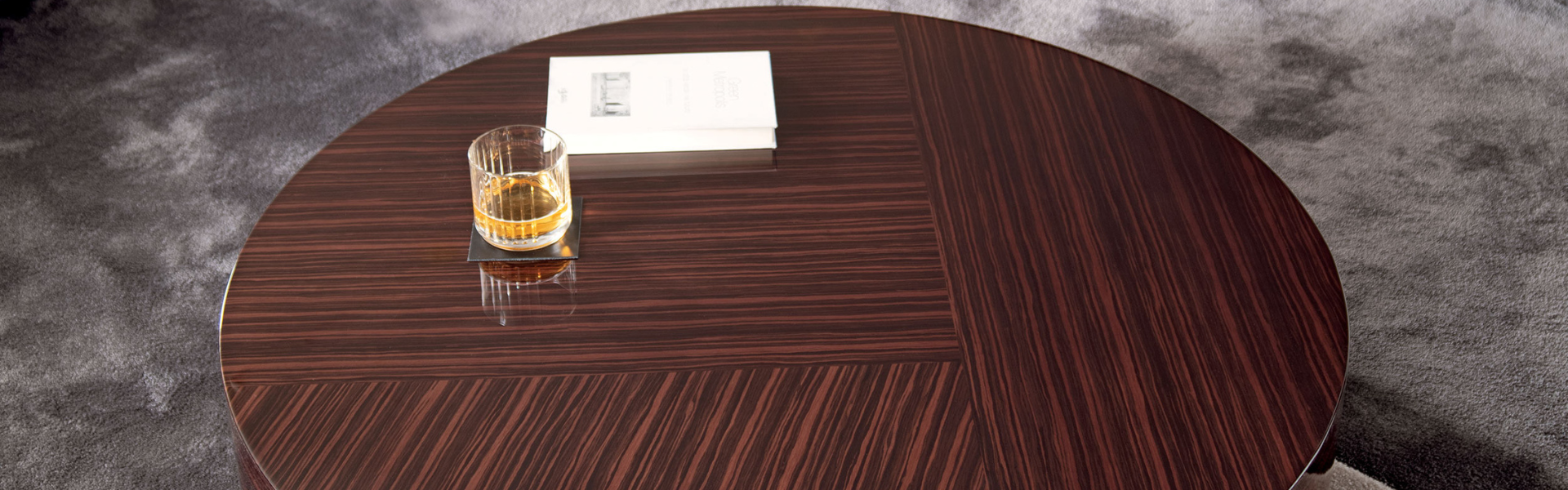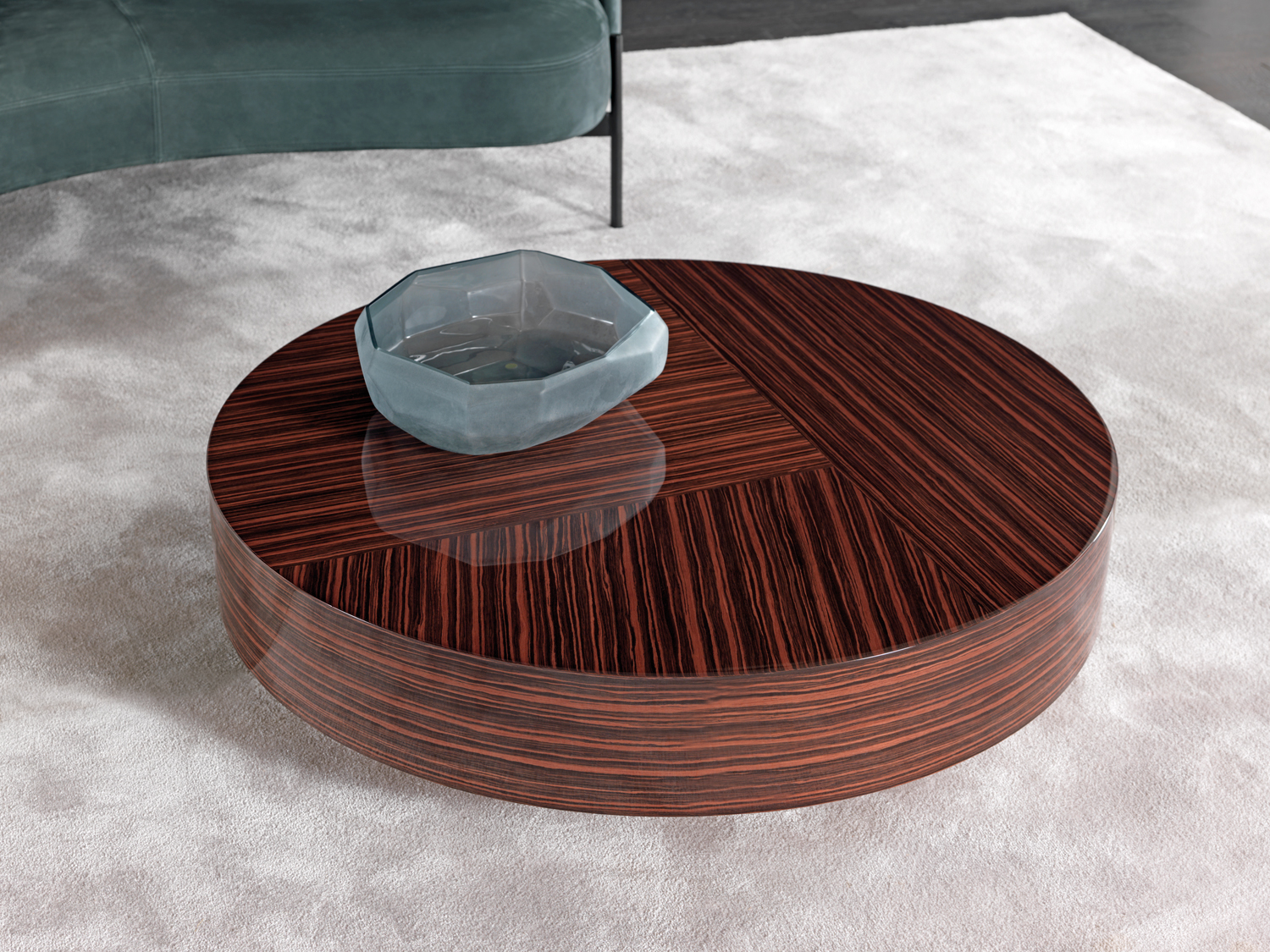 The material substance of wood establishes a dialogue with the glossy finish to add appeal to the pieces, conceived to elegantly furnish spaces in the home or elsewhere.