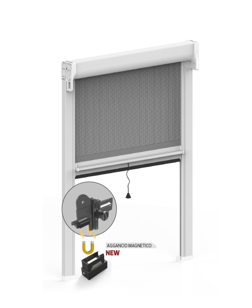 Kiss 50 is a spring-loaded retractable insect screen, suitable for windows only, with telescopic guides and an adagio brake as standard.