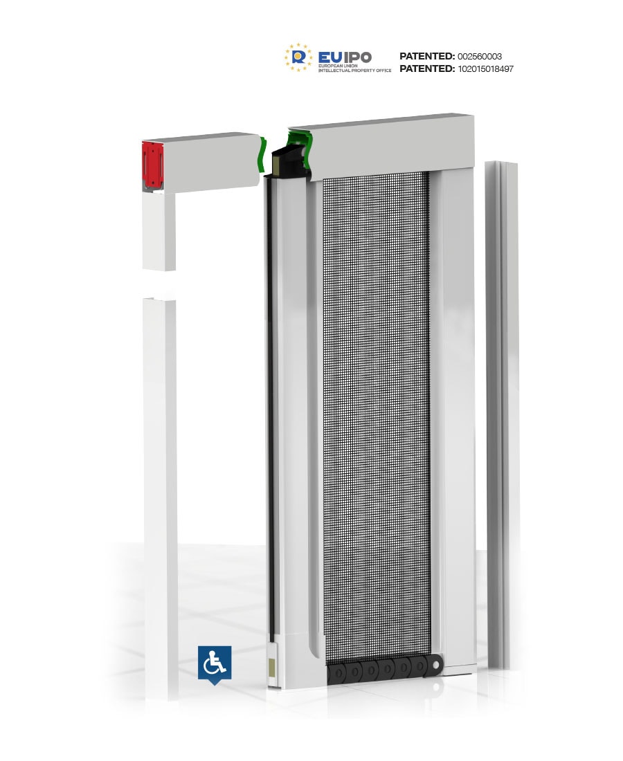 Libera is an elegant side-rolling insect screen, ideal for French windows; the ergonomic grip along the entire profile of the handlebar makes it comfortable and easy to operate from both inside and outside.