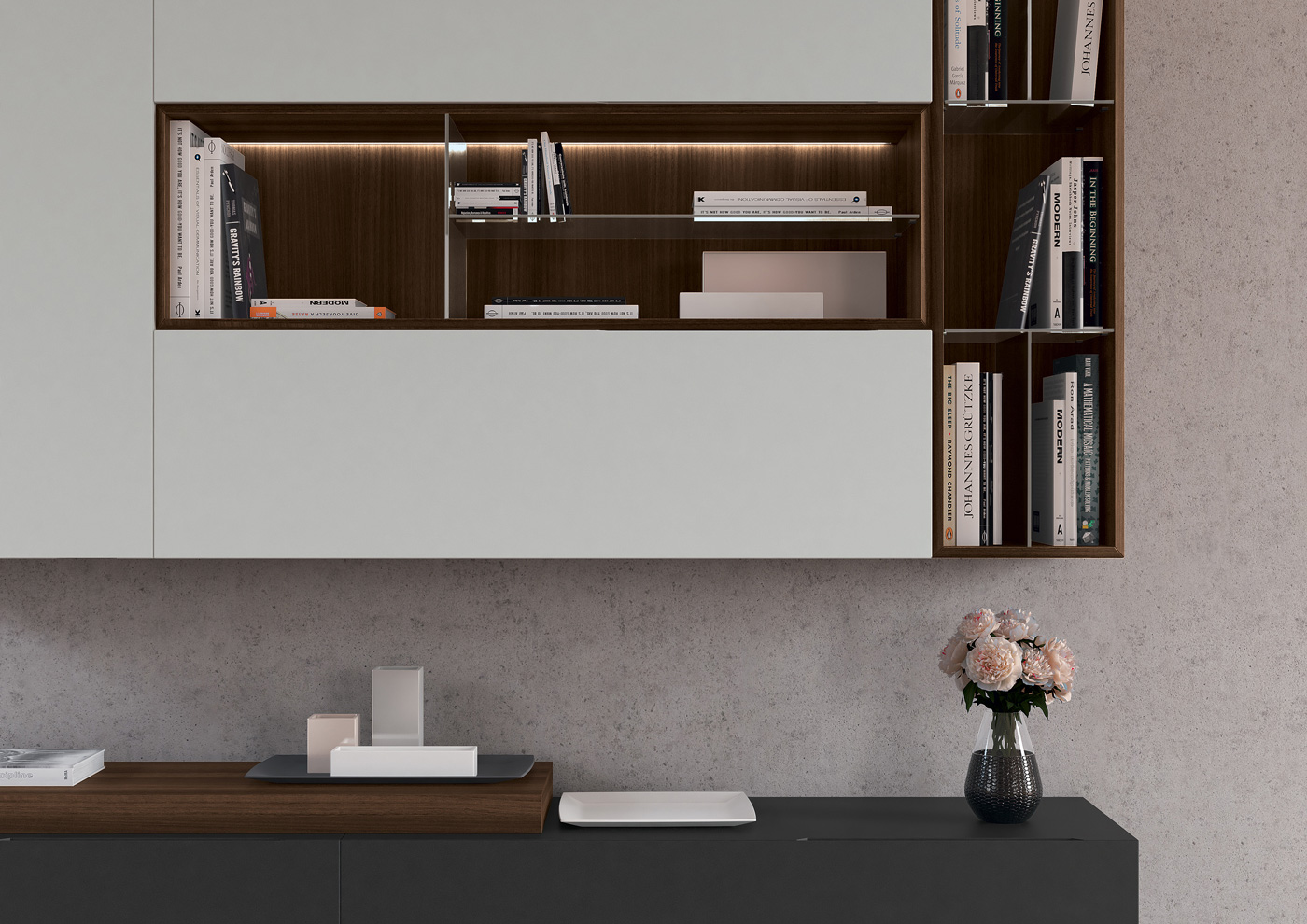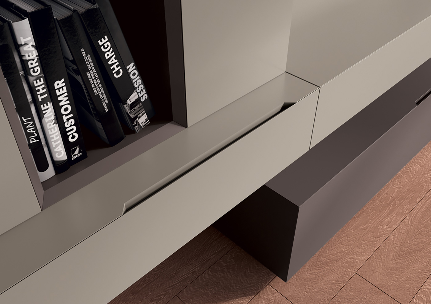 QUARANTACINQUE is an open system distinguished by modern and elegant lines, which thanks to the great variety of its components allows a myriad of different solutions for the home environment.
