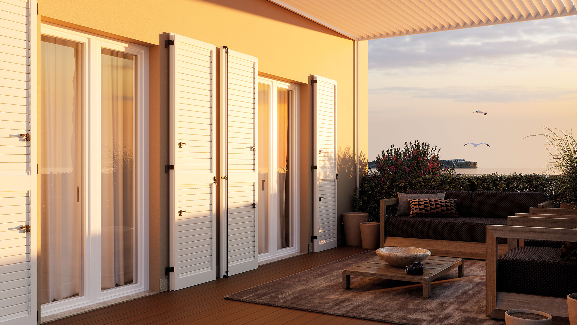Made from the highest quality extruded elements, it features sashes with a perimeter profile section mm 45x70, rebates mm 20 and an increased section (mm 100) of the lower profile, in the case of even rebates.