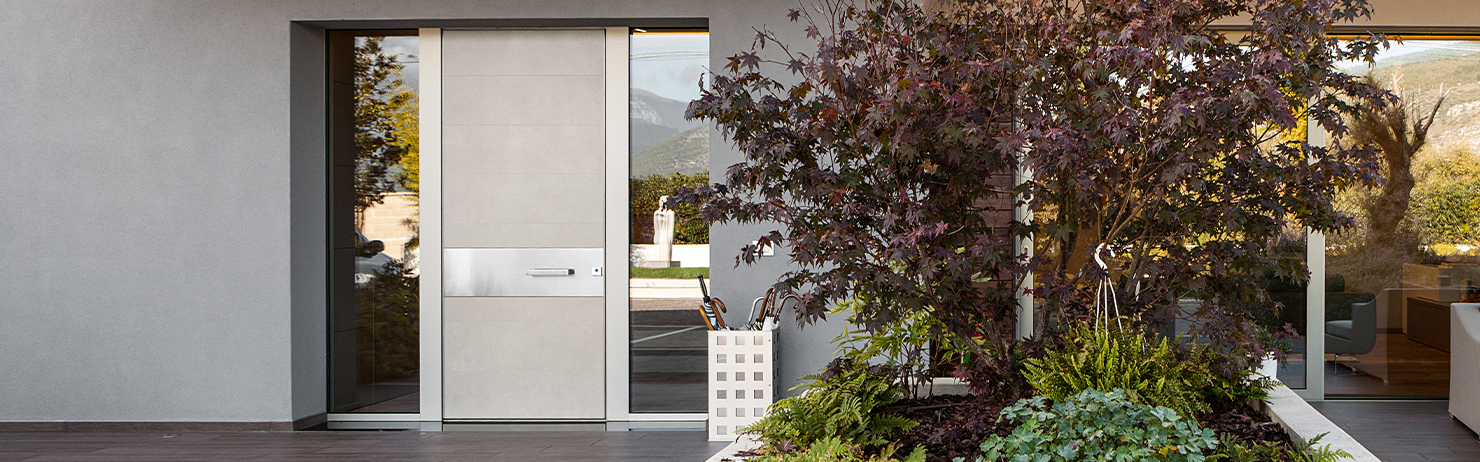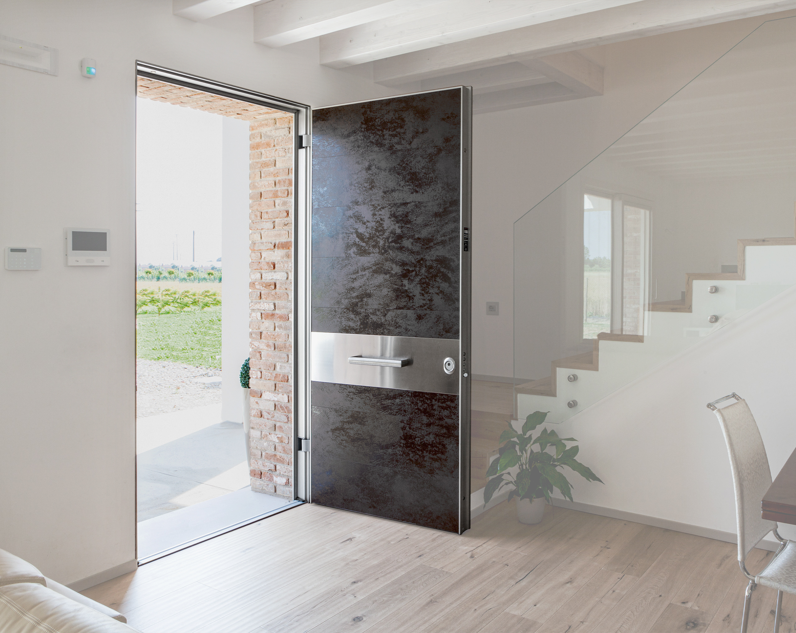 - Door profiles and frame covering profiles in steel brushed aluminum as standard without visible screws.