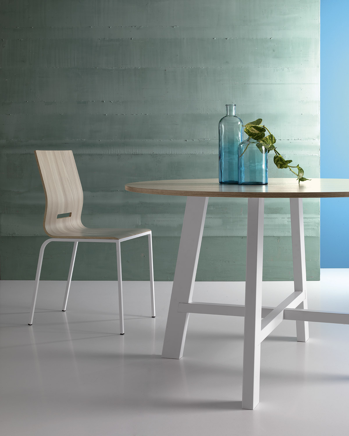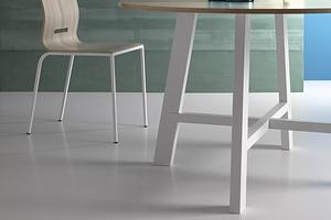 Central tubular metal base combined with an 18mm thick Cleaf laminate top.