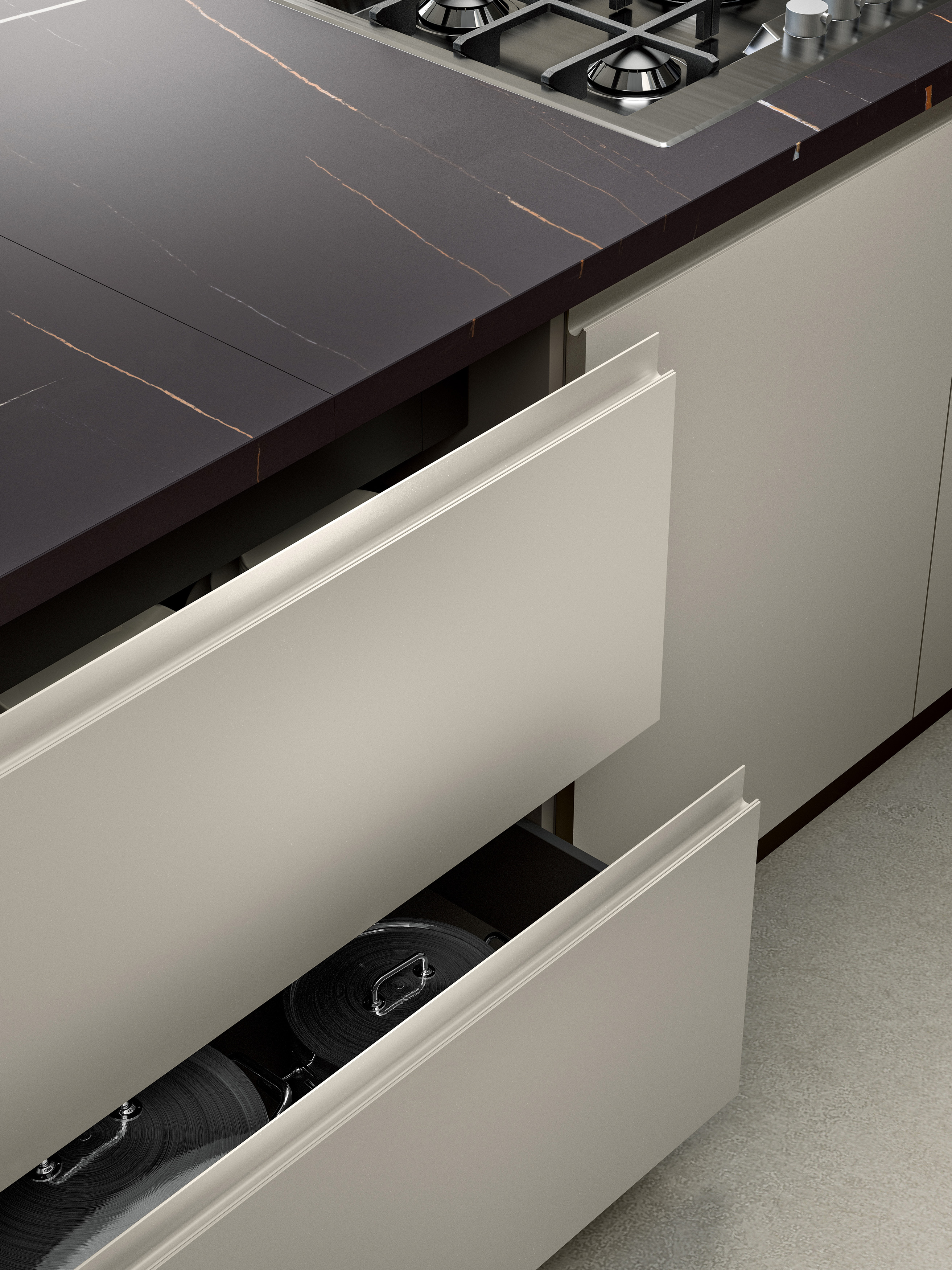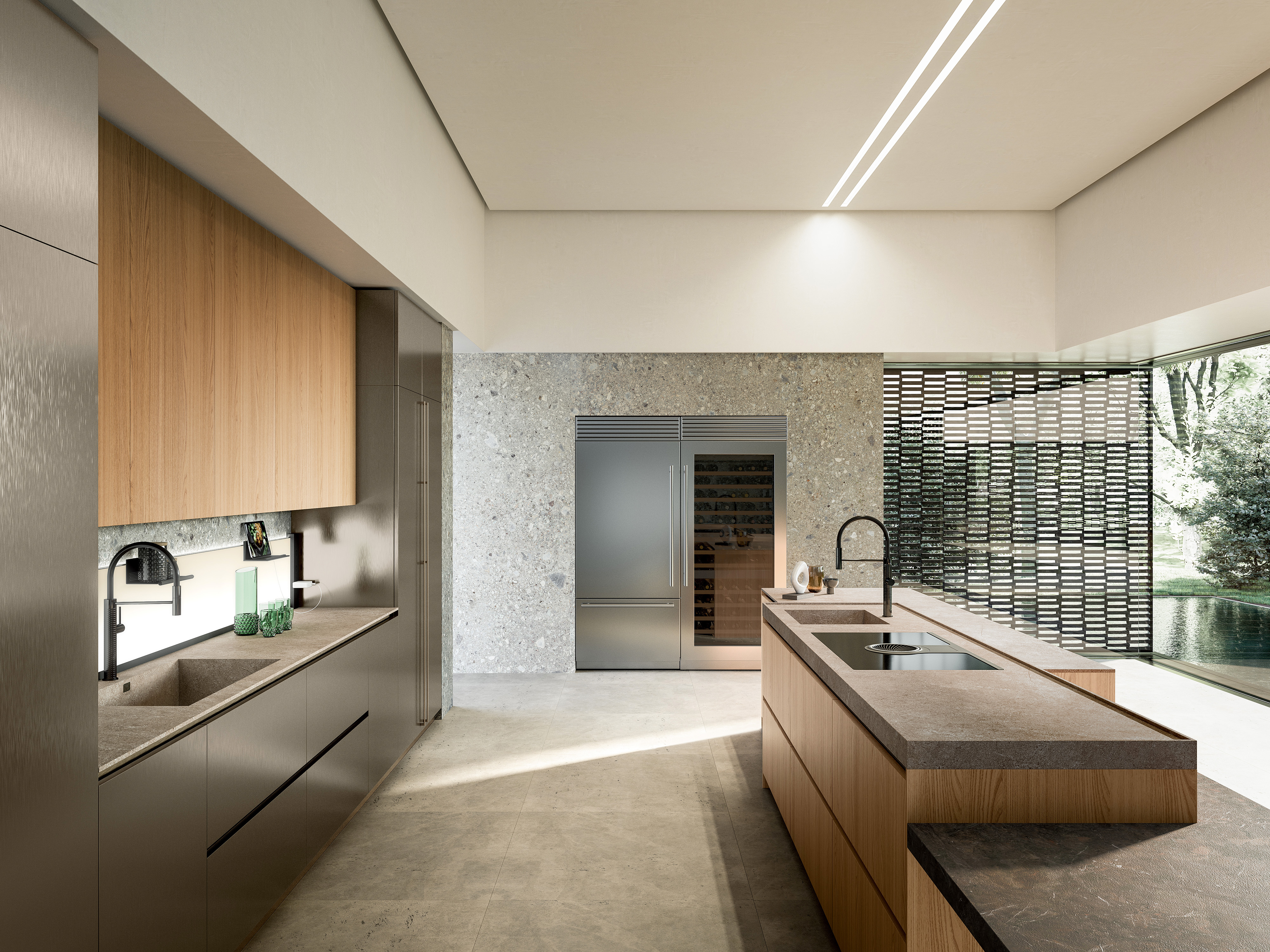 Yota kitchen is created around the people who live it, every detail has been designed to accompany the customer on an emotional journey. The rich 22 mm thick door gives particular importance to the kitchen and is enhanced by a wide range of materials, such as wood veneers finely worked and glossy lacquered, matt and special lacquers.