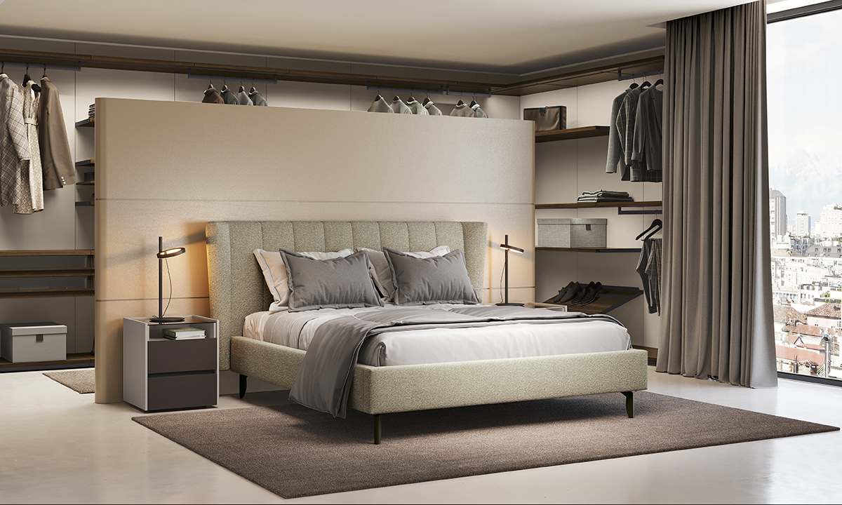 The ALLURE bed in Roma Incense fabric is the ideal furnishing solution for those looking to create a refined and cosy corner where comfort and style blend perfectly.