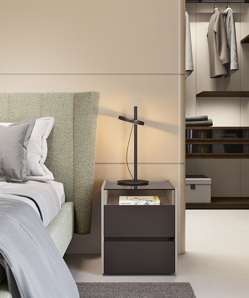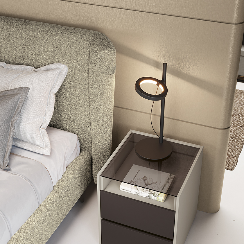 The ASTRID bedside tables feature an elegant contrast of colours and textures.