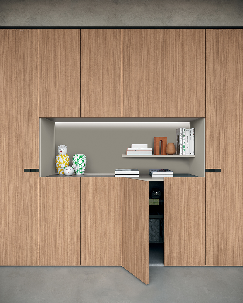 The possibility of customising the room with an over door wardrobe allows for a solution that exploits every available inch and follows the architecture of the room.