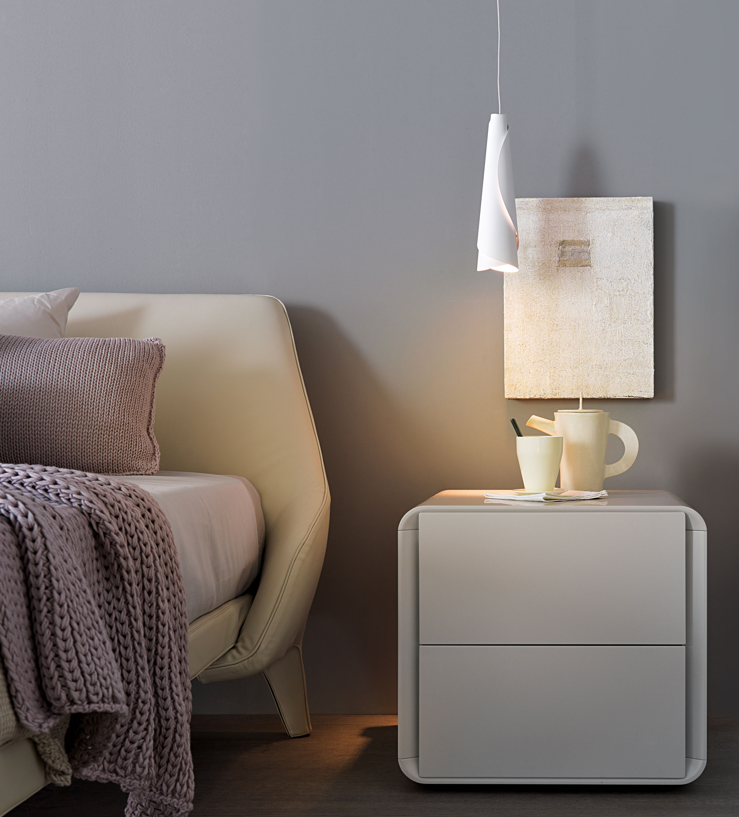 The purity of the rectangular surface of the front, is toned down by the rounded edges of the structure, so as to create a formal contradiction which makes an unique object.