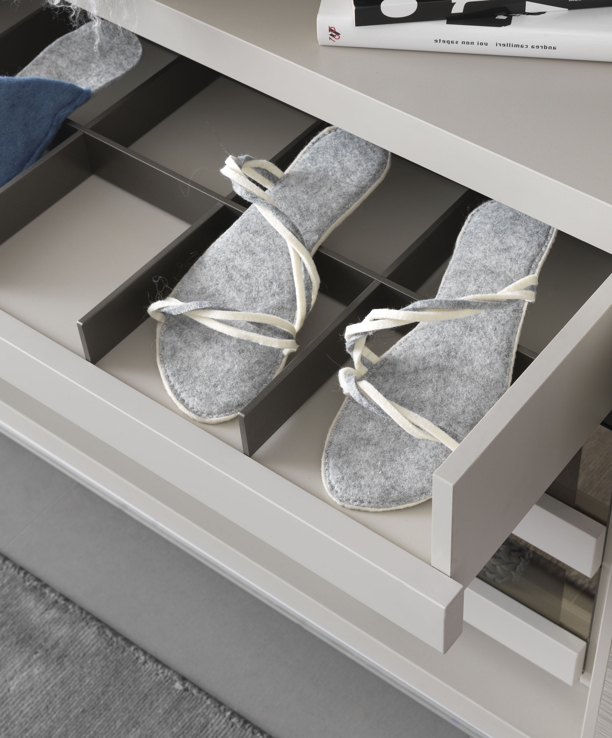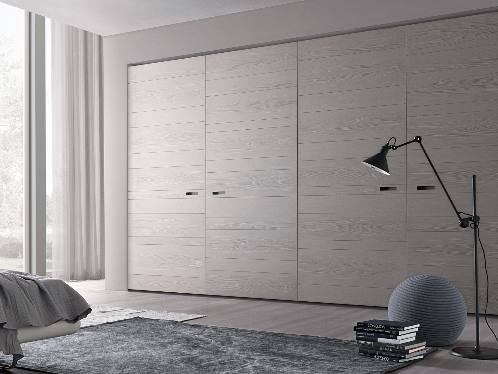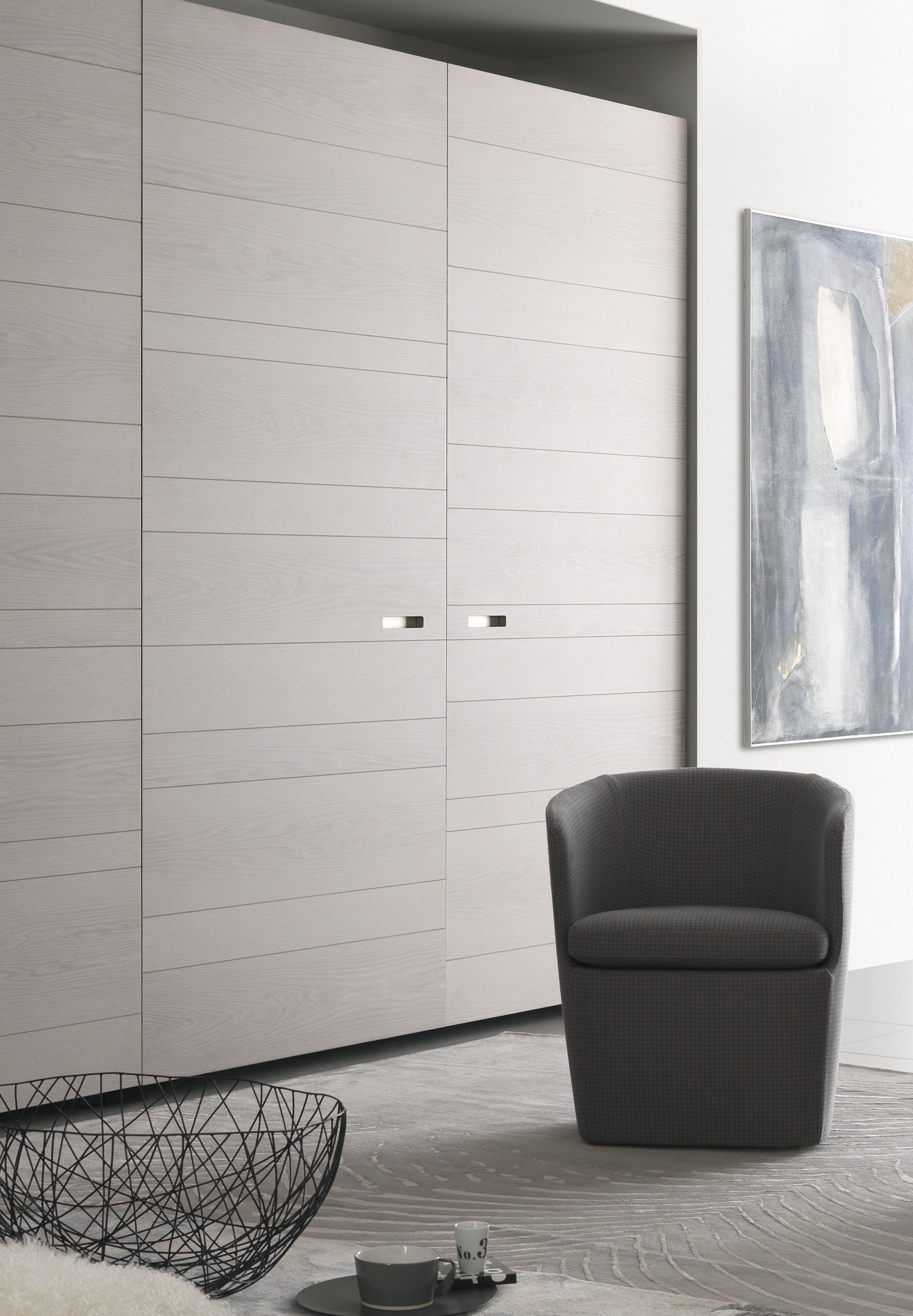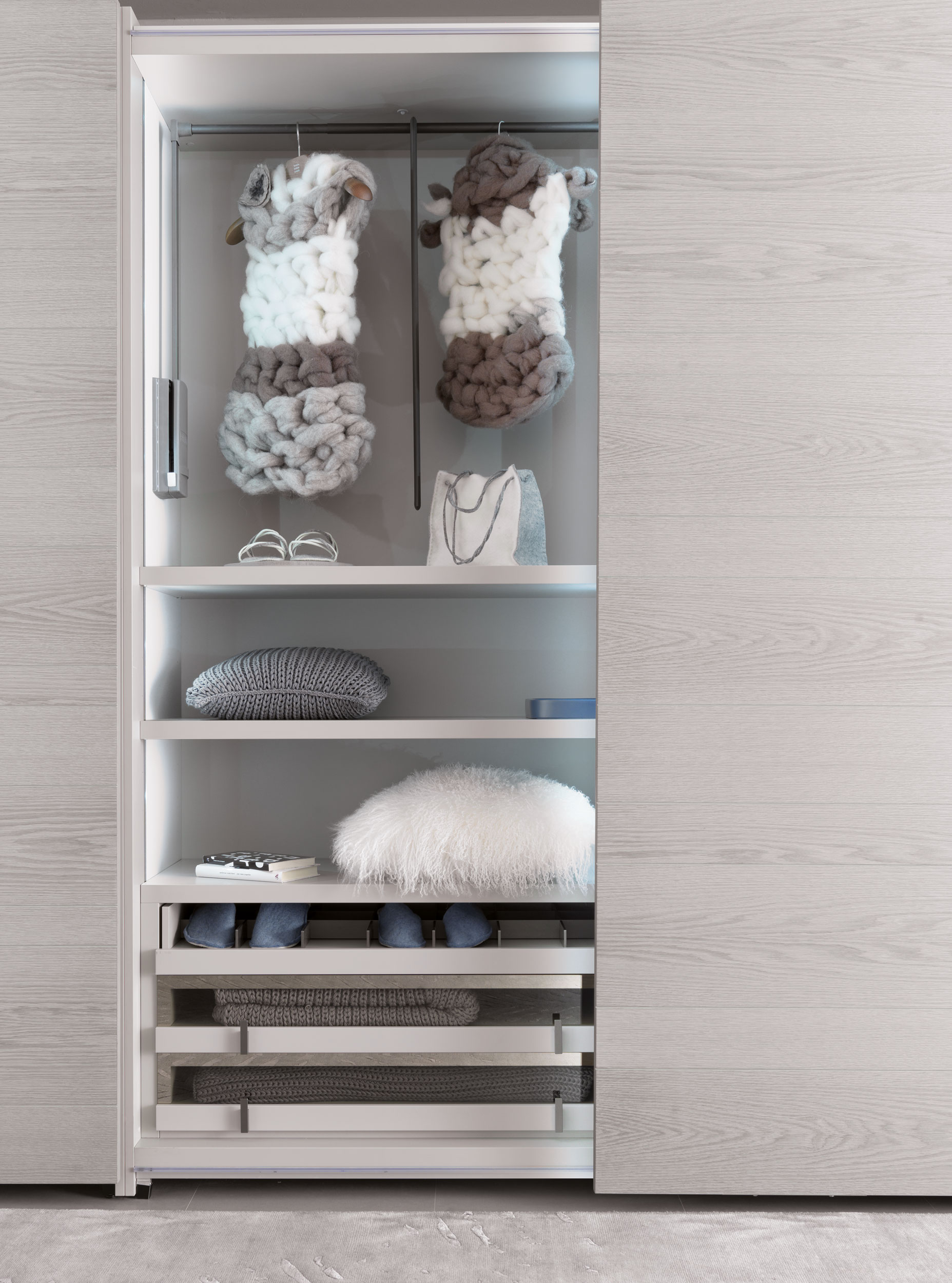 The particular grain adds to the wardrobe valuable tactile and visual quality.