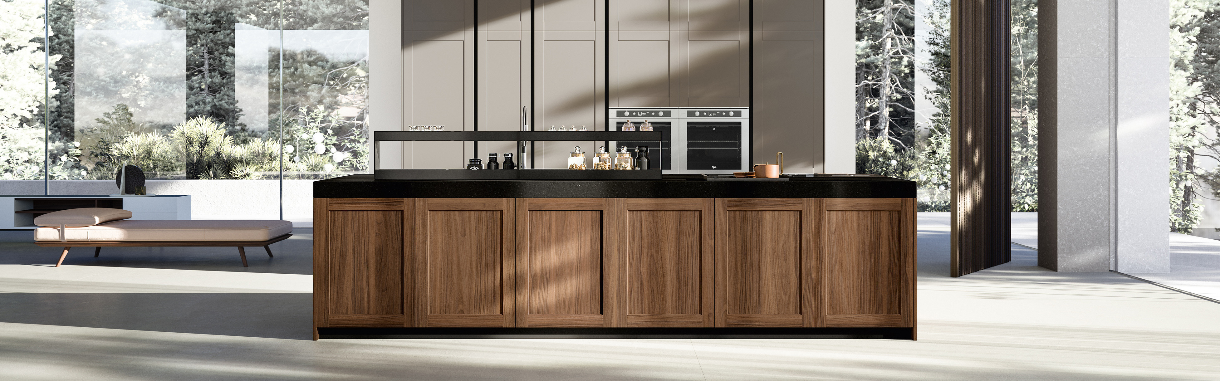 The materials enhance the beauty of the contrasts, the result of careful choices of veneers and solid but also the result of a high construction technology that ensures stability over time.