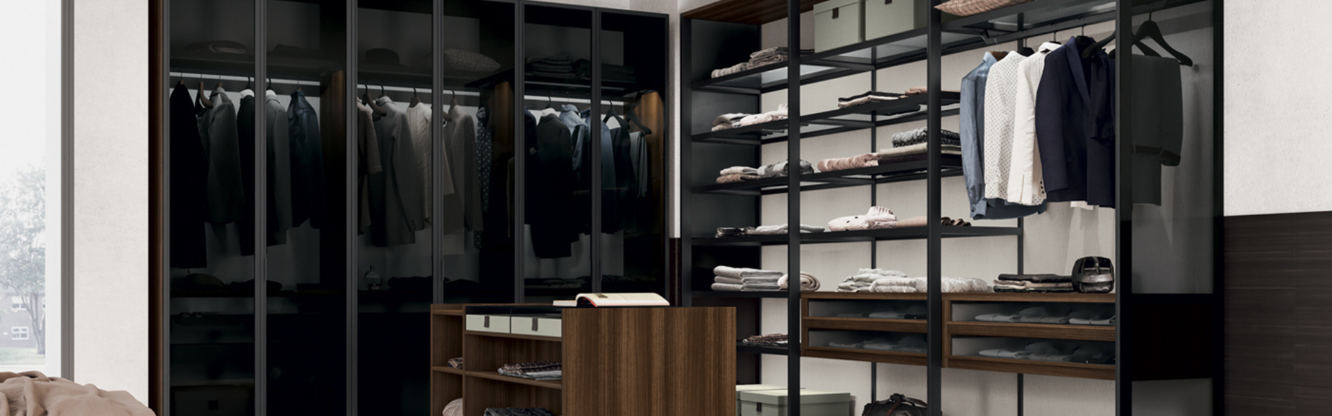 and two width 1920/2560mm (75 7/8” – 100 6/8”), fitted sideboards with hinged doors, drawers, flap doors.