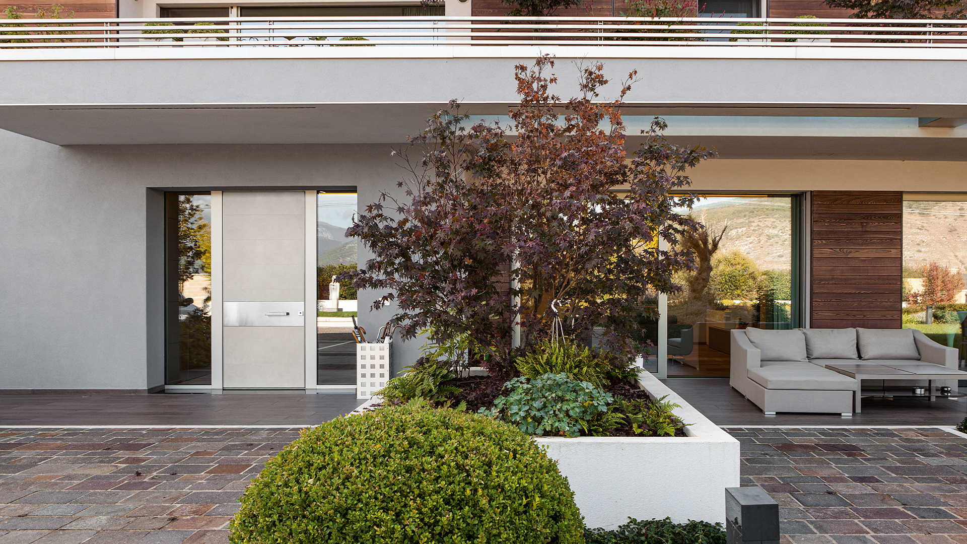 - Door profiles and frame covering profiles in steel brushed aluminum as standard without visible screws.