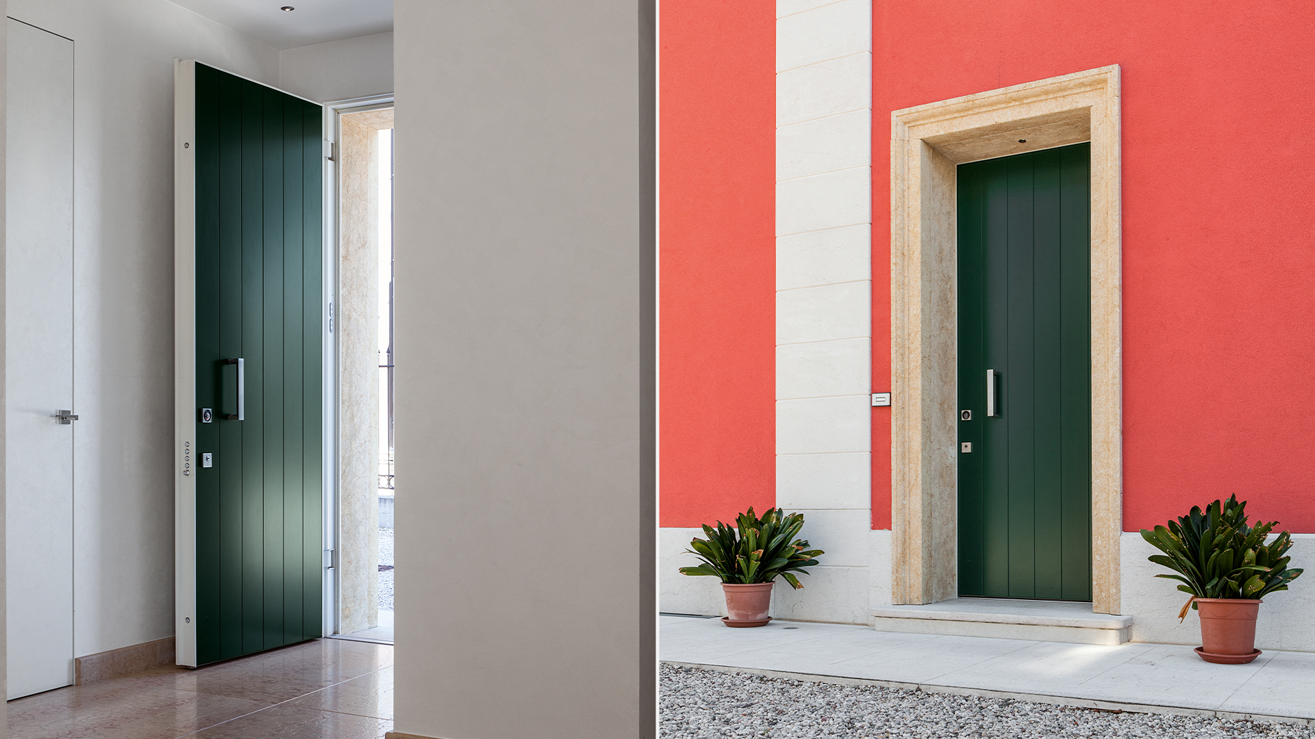 Tekno by Oikos Venezia is the safety door with concealed hinges characterized by high-end performance and EI 90 or EI120 fire resistance. It can be installed flush with internal wall, flush with external wall, flush with plasterboard wall, interior coplanar with surround.