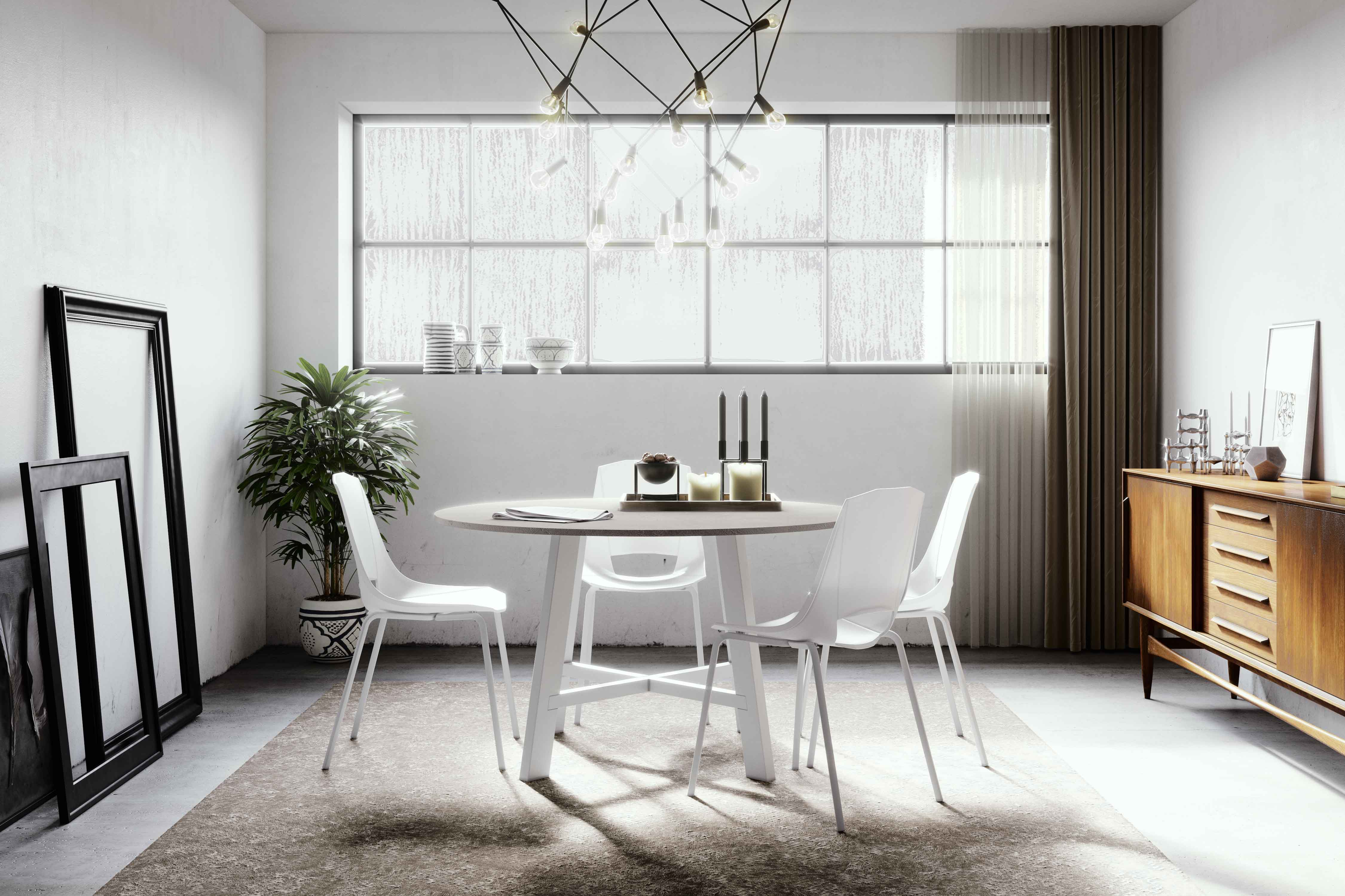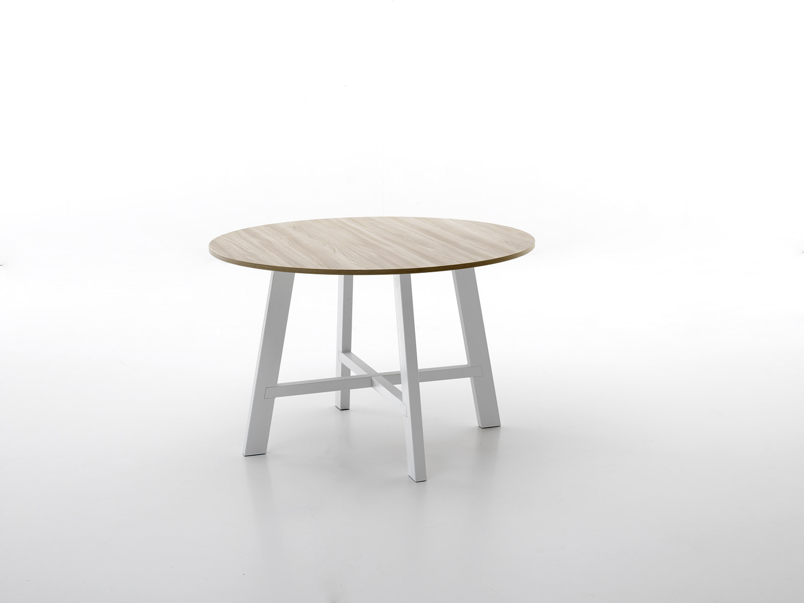 Round table with a diameter of 130cm in a fixed version that can seat 4 to 6 people.