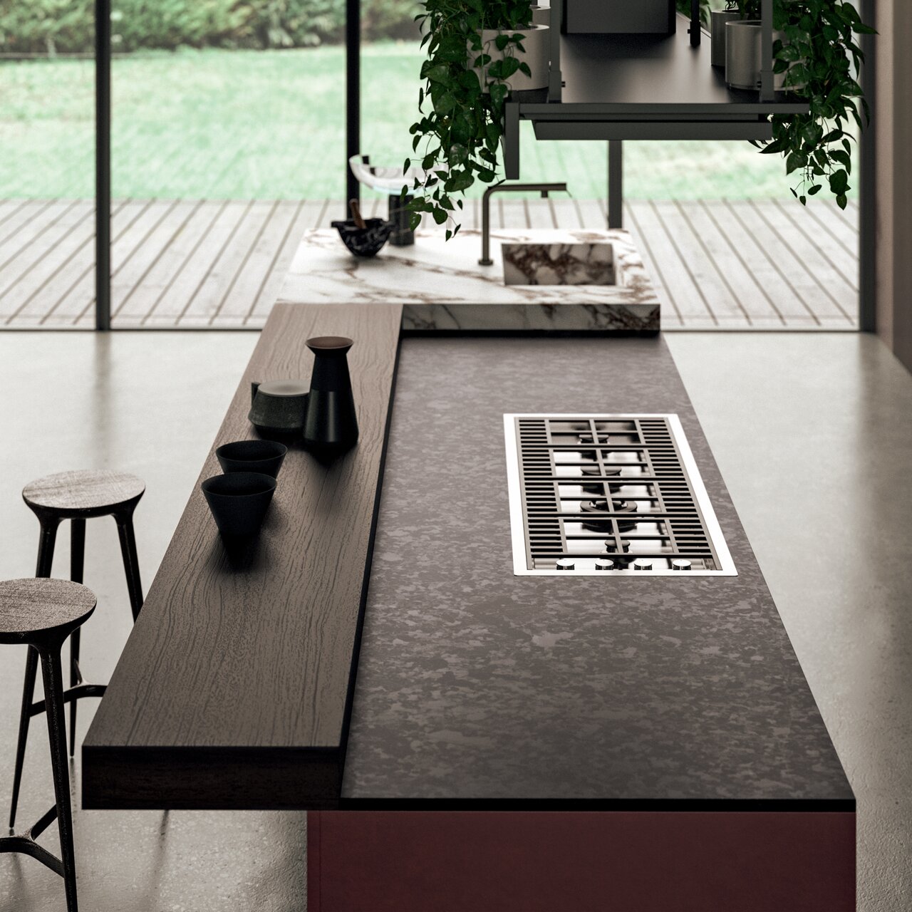 Binova proposes a new path of exploration around the relationship between the kitchen and other areas of the home, in a continuous intertwining of functions, habits and needs of everyday life. Spaces stop being limited by structural elements to become open and transitional zones, in which there is no longer a real operational hierarchy.