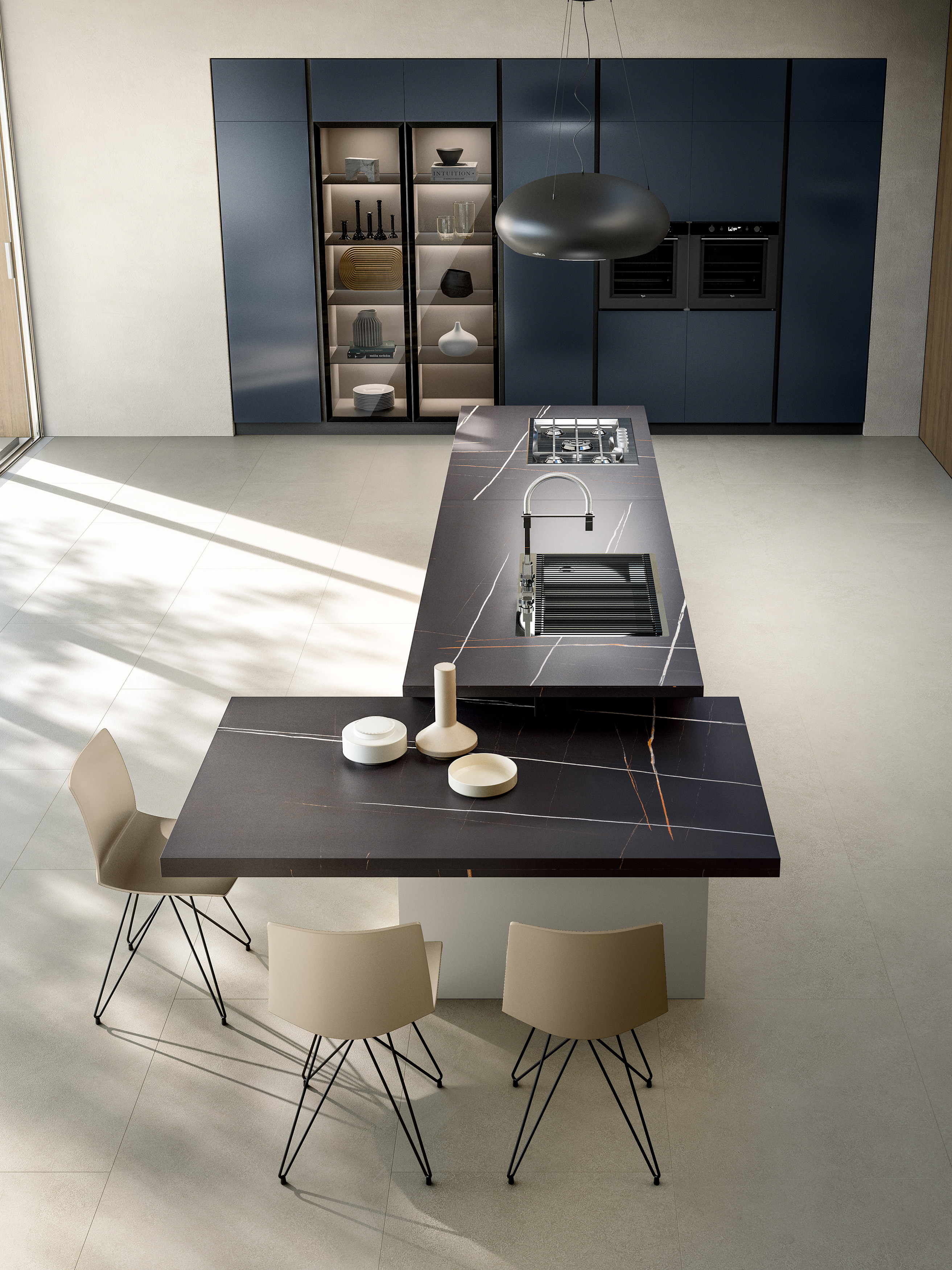 Yota kitchen is created around the people who live it, every detail has been designed to accompany the customer on an emotional journey. The rich 22 mm thick door gives particular importance to the kitchen and is enhanced by a wide range of materials, such as wood veneers finely worked and glossy lacquered, matt and special lacquers.