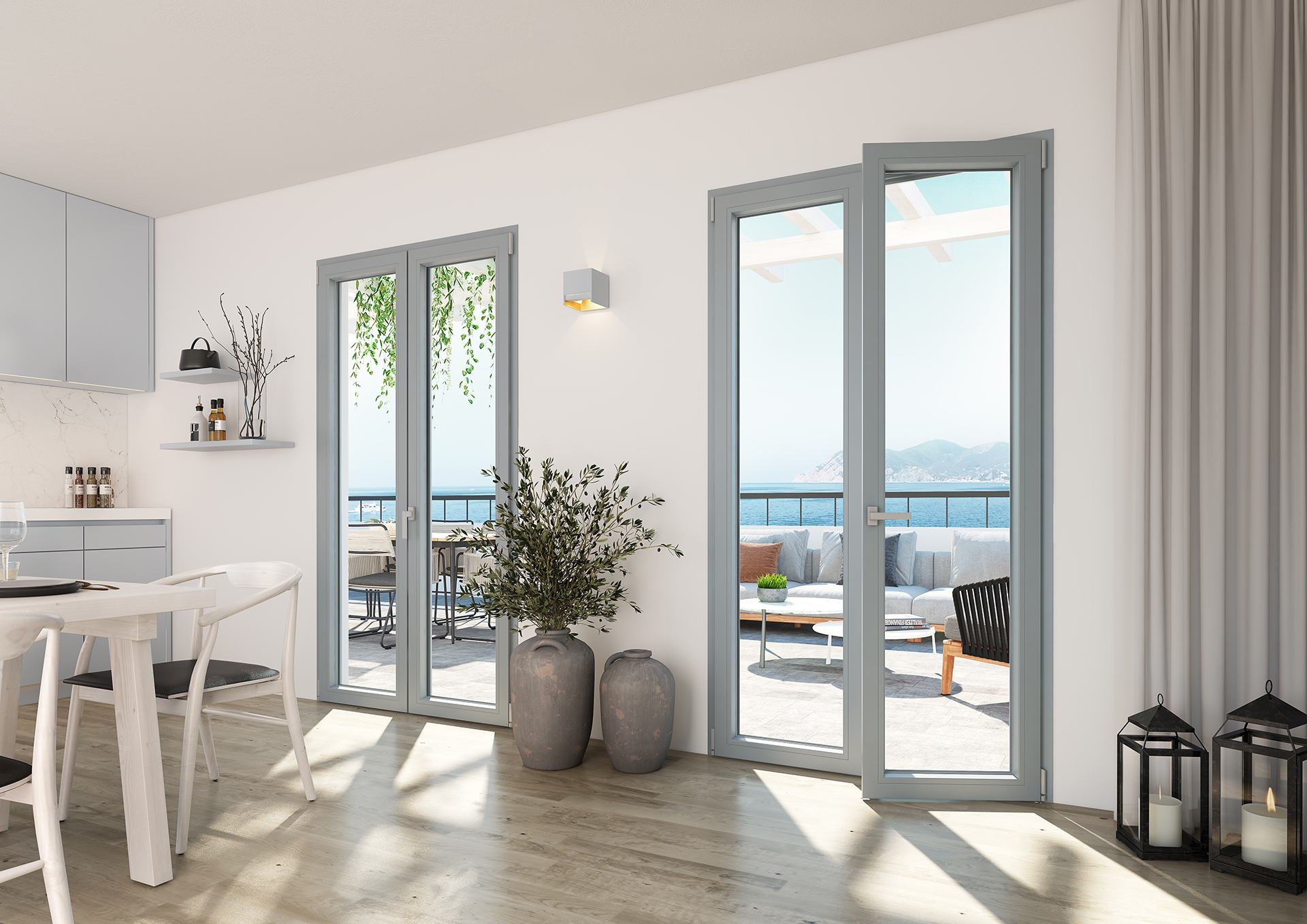Grazie alla sezione ridotta del profilo dell’anta, si ha una vista panoramica ancora più ampia, senza sacrificare la stabilità del telaio da 76mm.